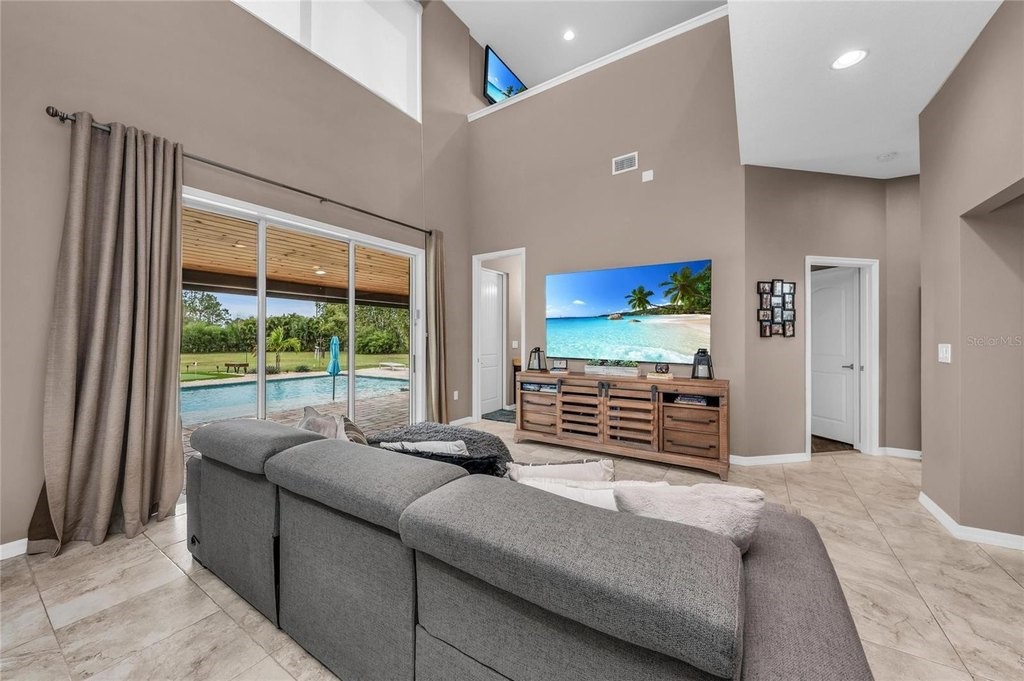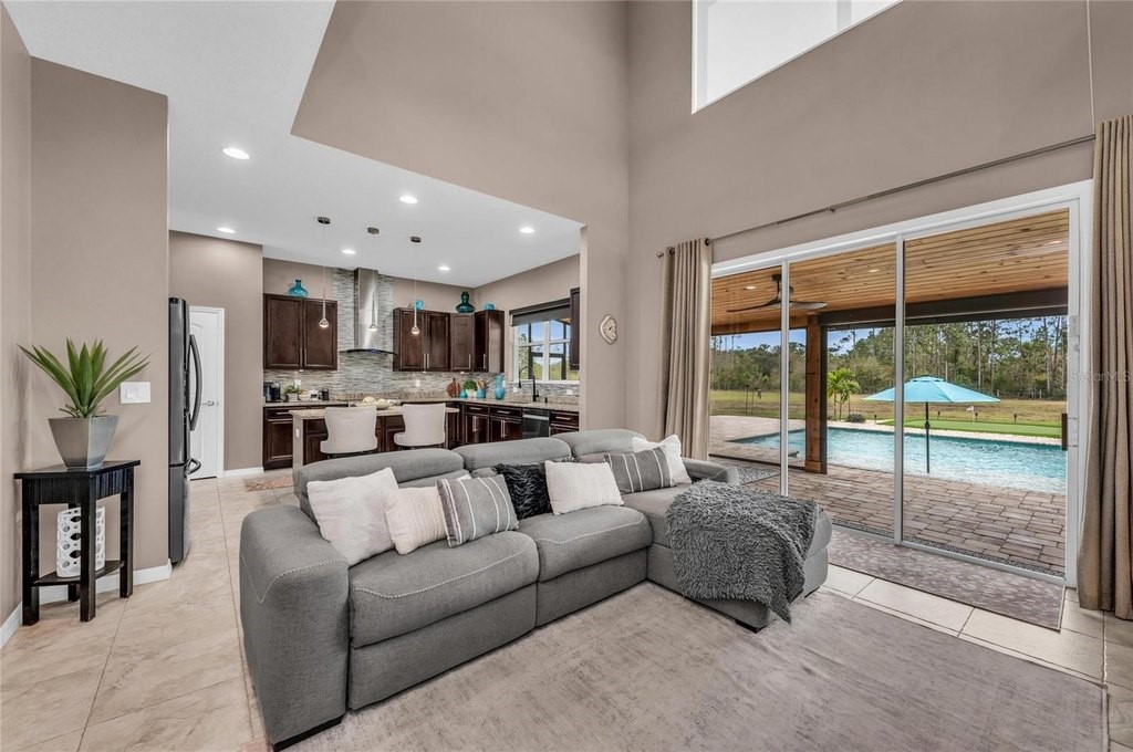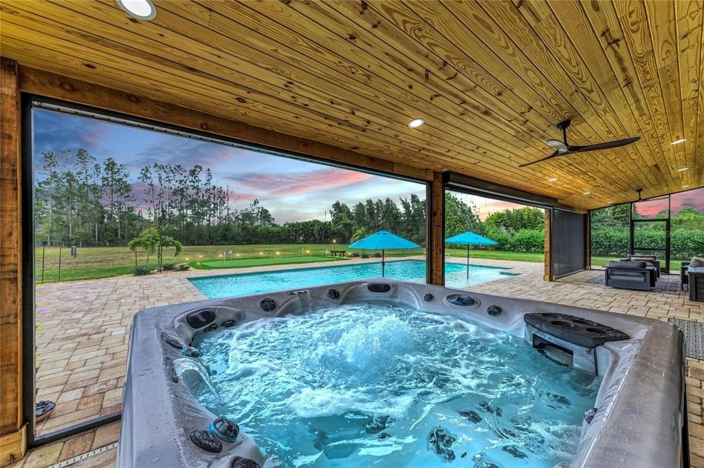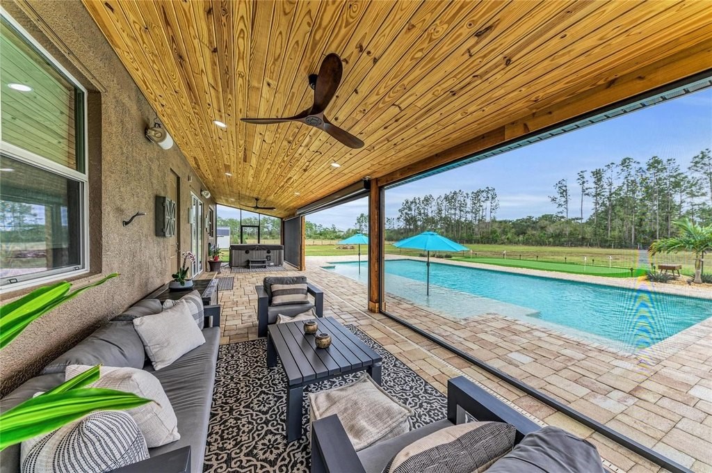 Discover the epitome of luxury living with this custom Mark Cahill home, nestled on a sprawling 4.5 acres with lush tropical landscape screening. This property offers the ultimate in privacy and freedom, featuring no deed restrictions or CDDs, and is fully fenced with a newly installed gated entry for added security. Equipped with Ring spotlight cameras and a doorbell, your peace of mind is prioritized. The residence boasts three spacious bedrooms and two and a half baths, designed with an open floor plan that enhances the flow of natural light. The great room impresses with its volume ceilings, creating an airy atmosphere perfect for both relaxation and entertaining. The chef's kitchen is a culinary dream, equipped with a stylish tile backsplash and high-end stainless-steel appliances, ensuring that every meal is a delight. The main bedroom, conveniently located on the first floor, features an ensuite bath complete with dual sinks and a luxurious walk-in shower, providing a serene retreat at the end of the day. Upstairs, you will find two additional bedrooms accompanied by a cozy loft area, ideal for a home office or play space. This home is equipped with a new Carrier HVAC system, complete with an air purifier and UV lamps, along with Nest thermostats for optimal climate control, ensuring comfort year-round. Step outside to experience your own private oasis, featuring a stunning 20 x 40 saltwater sport pool with a 9-foot sun shelf, perfect for soaking up the sun. The outdoor patio extension, measuring 52'x12', showcases a tongue and groove ceiling adorned with recessed lighting and fans, creating an inviting space for gatherings. Unwind in the hot tub or enjoy the convenience of the 20' x 8' motorized Kevlar screen for added comfort. For the golf enthusiasts, a 30x20 golf green awaits, while the property's power is being assisted by 16 solar panels that generate an impressive 30-40 kWh per day accompanied by a 18 kWh Generac battery backup that keeps your necessities powered during challenging weather events or you can simply go off-grid. Making this home not only luxurious but also energy-efficient. With essential amenities like restaurants, hospitals, UTC Mall and shopping minutes away and being approximately 12 miles from I-75, you'll have everything you need within easy reach. This unique parcel offers a perfect blend of privacy and convenience, making it an exceptional opportunity for anyone looking to escape the hustle and bustle while still enjoying modern comforts. Embrace the lifestyle you deserve in this exquisite property that combines elegance, functionality, and sustainability.