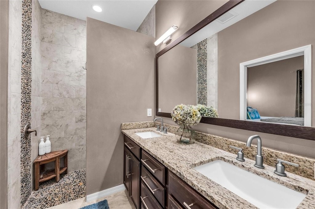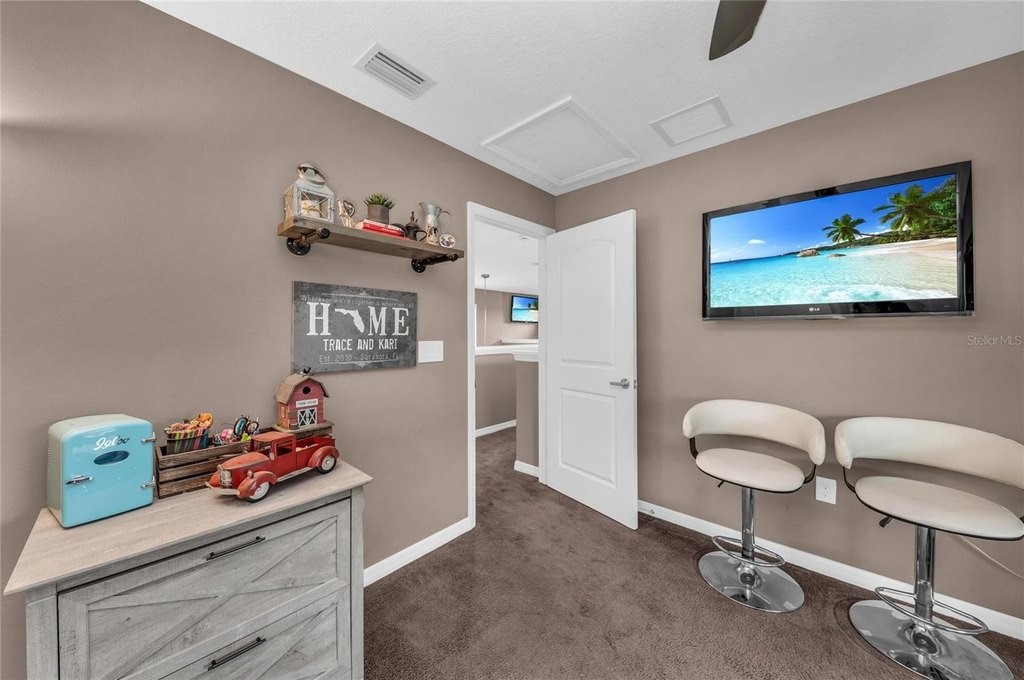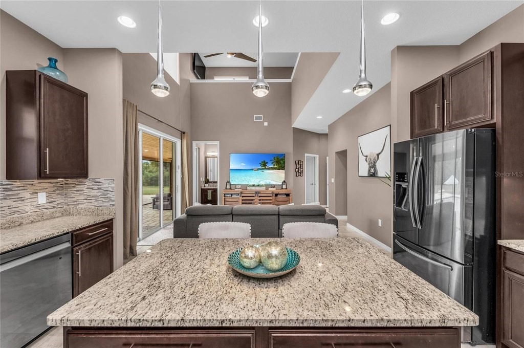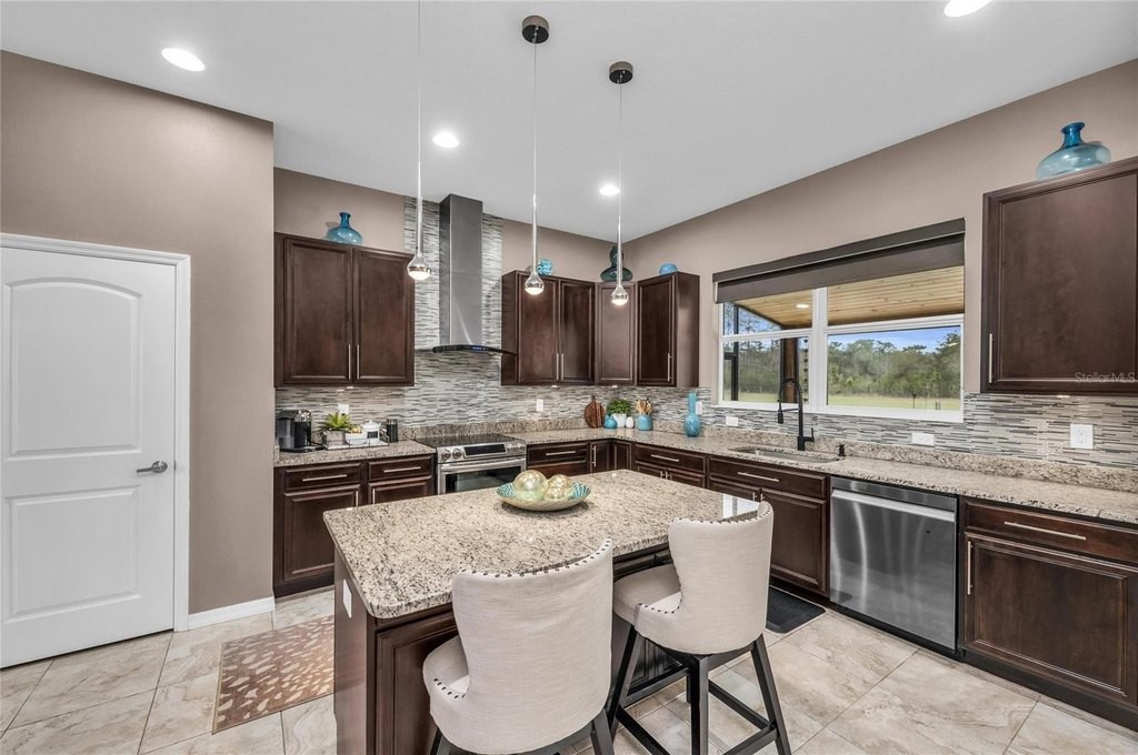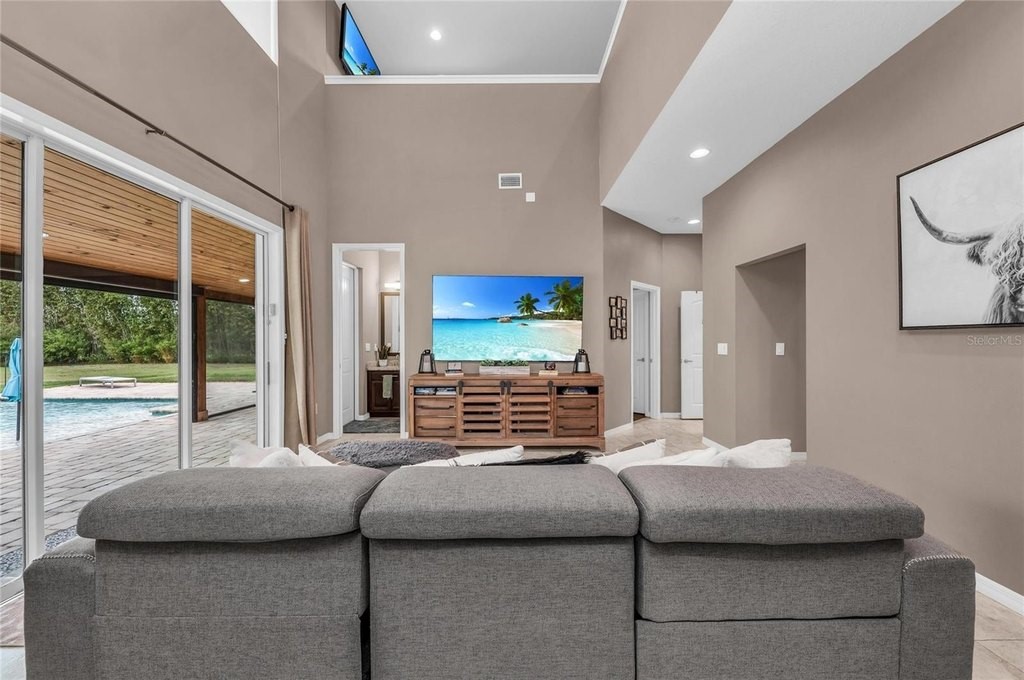Discover the epitome of luxury living with this custom Mark Cahill home, nestled on a sprawling 4.5 acres with lush tropical landscape screening. This property offers the ultimate in privacy and freedom, featuring no deed restrictions or CDDs, and is fully fenced with a newly installed gated entry for added security. Equipped with Ring spotlight cameras and a doorbell, your peace of mind is prioritized. The residence boasts three spacious bedrooms and two and a half baths, designed with an open floor plan that enhances the flow of natural light. The great room impresses with its volume ceilings, creating an airy atmosphere perfect for both relaxation and entertaining. The chef's kitchen is a culinary dream, equipped with a stylish tile backsplash and high-end stainless-steel appliances, ensuring that every meal is a delight. The main bedroom, conveniently located on the first floor, features an ensuite bath complete with dual sinks and a luxurious walk-in shower, providing a serene retreat at the end of the day. Upstairs, you will find two additional bedrooms accompanied by a cozy loft area, ideal for a home office or play space. This home is equipped with a new Carrier HVAC system, complete with an air purifier and UV lamps, along with Nest thermostats for optimal climate control, ensuring comfort year-round. Step outside to experience your own private oasis, featuring a stunning 20 x 40 saltwater sport pool with a 9-foot sun shelf, perfect for soaking up the sun. The outdoor patio extension, measuring 52'x12', showcases a tongue and groove ceiling adorned with recessed lighting and fans, creating an inviting space for gatherings. Unwind in the hot tub or enjoy the convenience of the 20' x 8' motorized Kevlar screen for added comfort. For the golf enthusiasts, a 30x20 golf green awaits, while the property's power is being assisted by 16 solar panels that generate an impressive 30-40 kWh per day accompanied by a 18 kWh Generac battery backup that keeps your necessities powered during challenging weather events or you can simply go off-grid. Making this home not only luxurious but also energy-efficient. With essential amenities like restaurants, hospitals, UTC Mall and shopping minutes away and being approximately 12 miles from I-75, you'll have everything you need within easy reach. This unique parcel offers a perfect blend of privacy and convenience, making it an exceptional opportunity for anyone looking to escape the hustle and bustle while still enjoying modern comforts. Embrace the lifestyle you deserve in this exquisite property that combines elegance, functionality, and sustainability.